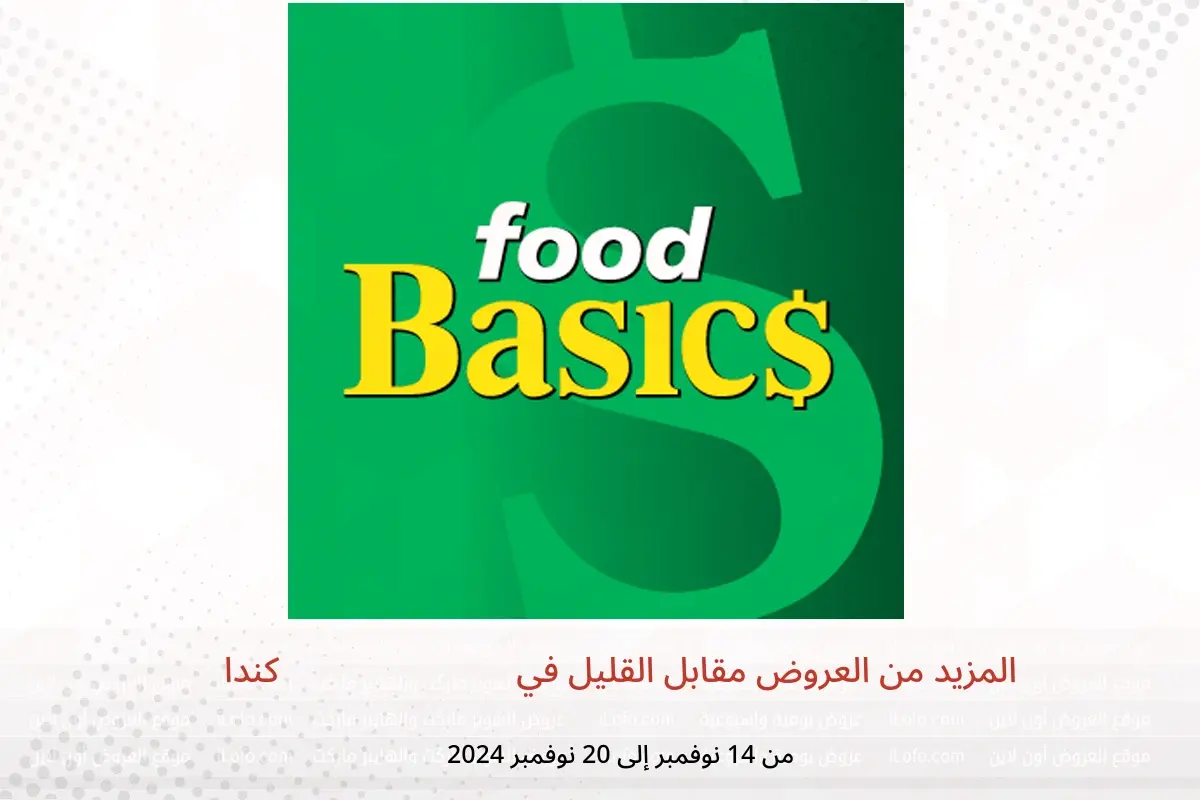 فود بيسيكس كندا تعلن عن تخفيضات جديدة بعنوان « المزيد من العروض مقابل القليل » المتوفرة حتي يوم 20 نوفمبر 2024, عروض جديدة وأسعار فقط في كندا.