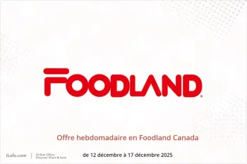 Foodland Canada annonce de nouvelles réductions intitulées « Offre hebdomadaire » disponibles jusqu'au 17 décembre 2025, de nouvelles offres et prix uniquement en Canada.